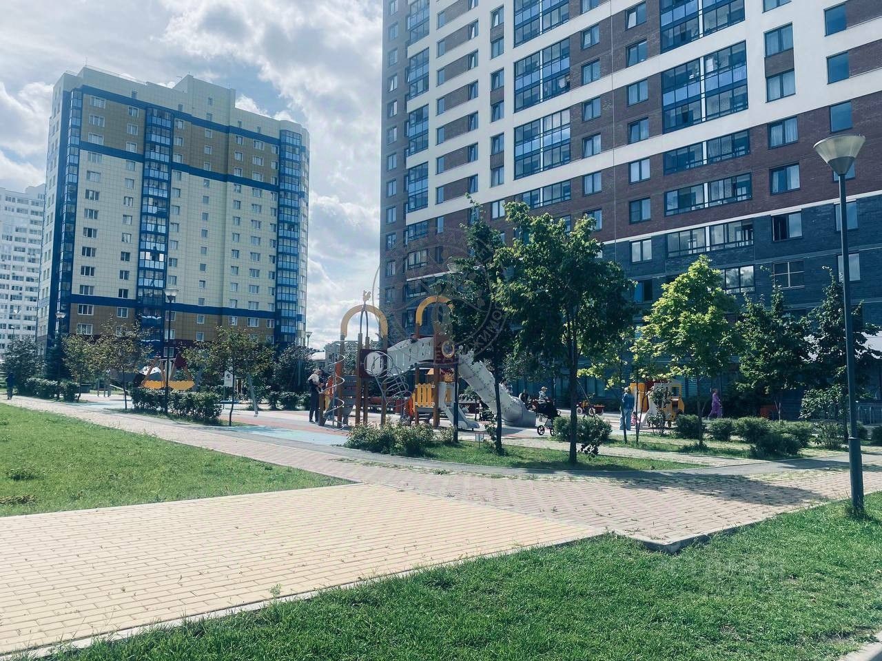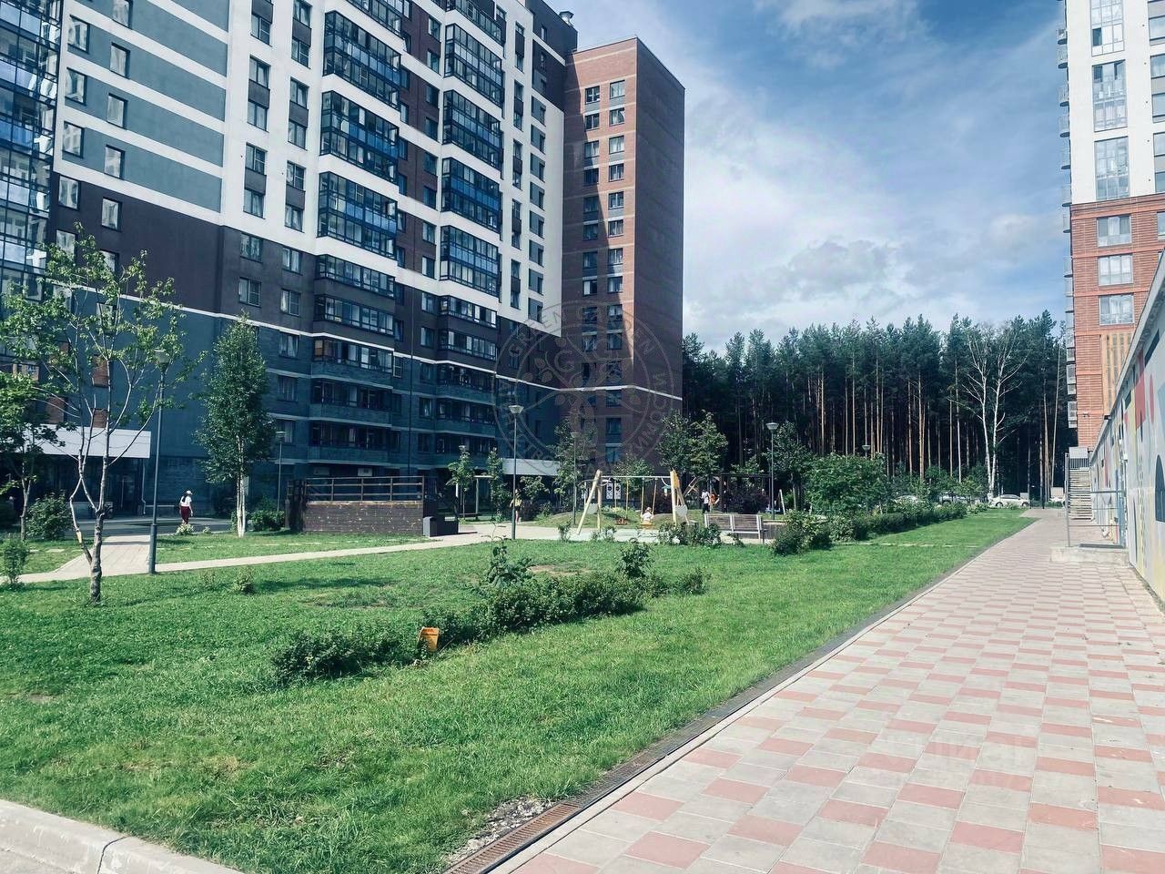 * Во двор, на огромную детскую площадку.