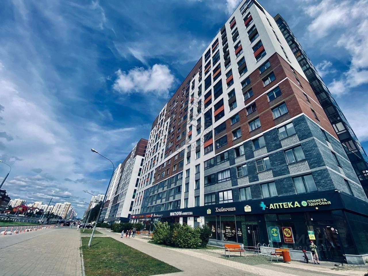 * В доме магазины ''Пятёрочка'', ''Красное&Белое'', ''Магнум'', аптека и другие.
