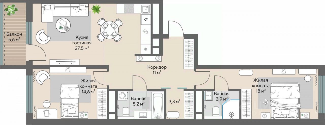Продаётся 2-комнатная квартира в строящемся доме (Секции 1.4-1.6 (2 очередь)), срок сдачи: IV-кв. 2026, общей площадью 85.2 кв.м., на 4 этаже.