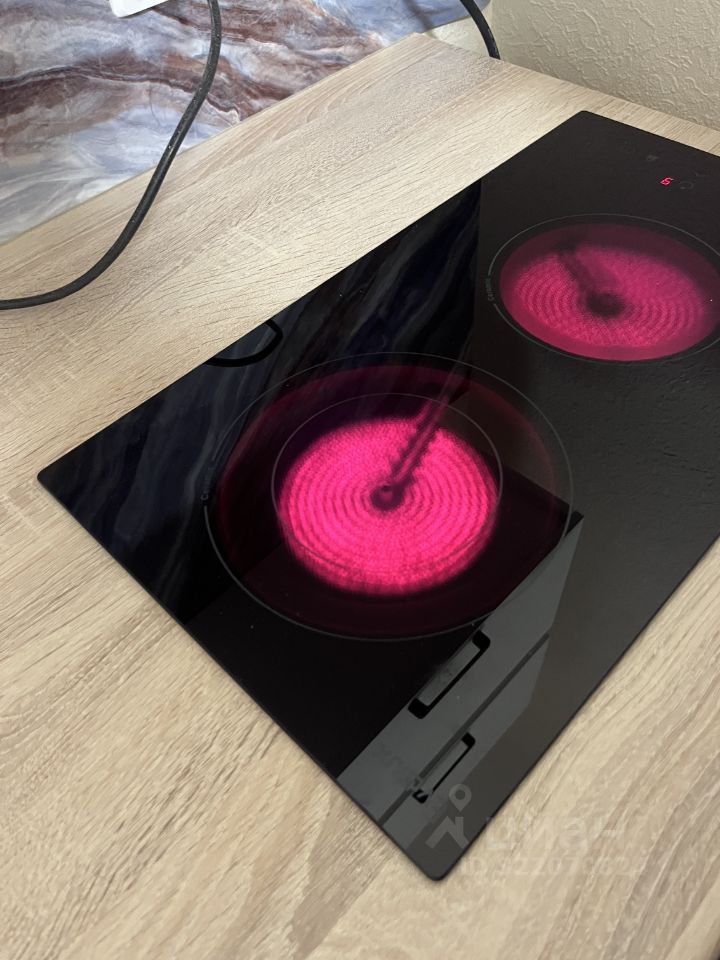 и вся необходимая техника: плита, микроволновая печь, холодильник, стиральная машинка. есть 2 шкафа и стеллаж в коридоре, большой рабой стол из дерева, длинный стол на кухне, табуретки, кресло, посуда