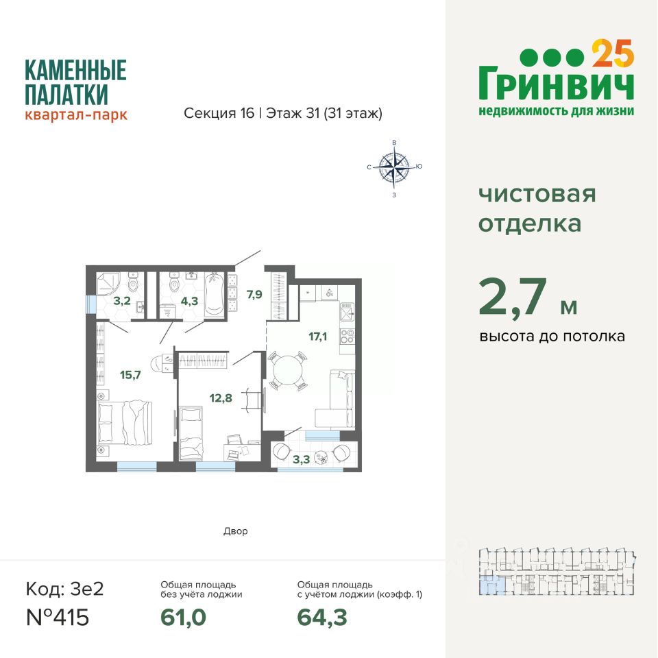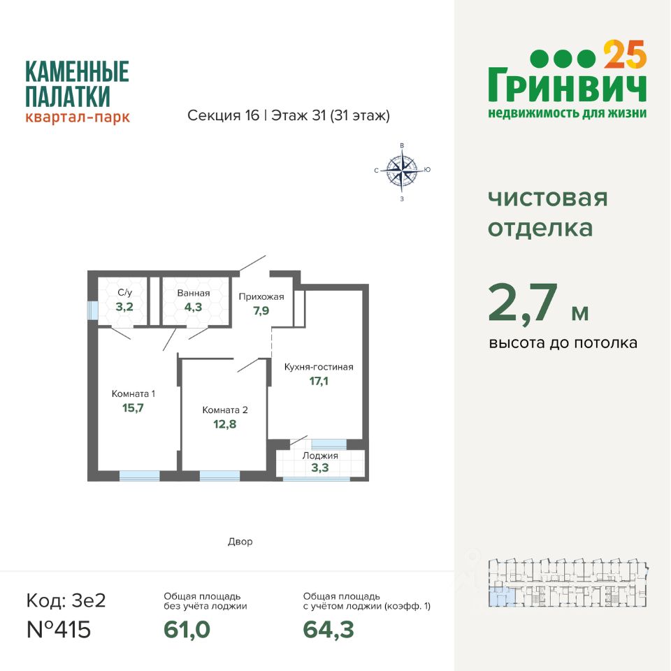 В продаже 4 очередь (секция 16). Срок сдачи 4 квартал 2025 года