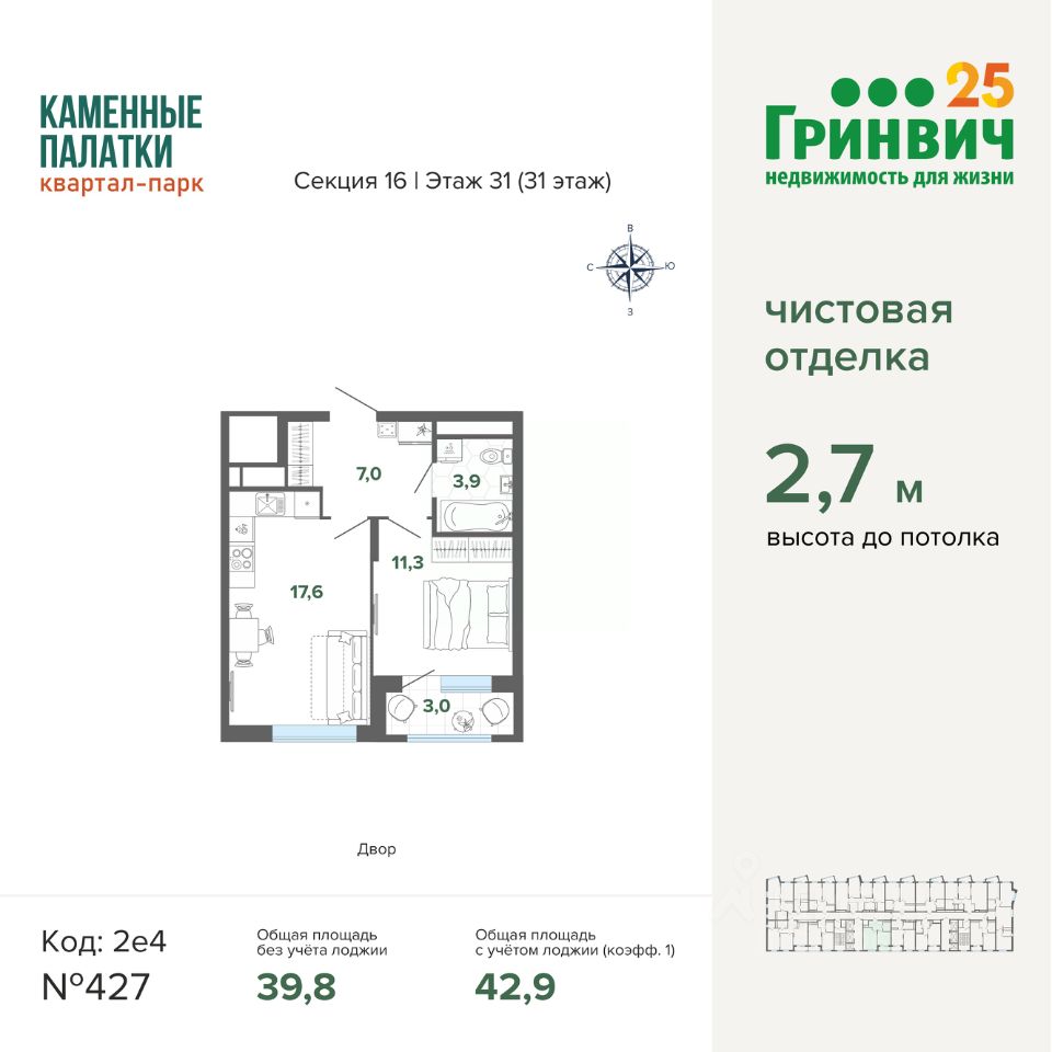 В продаже 4 очередь (секция 16). Срок сдачи 4 квартал 2025 года