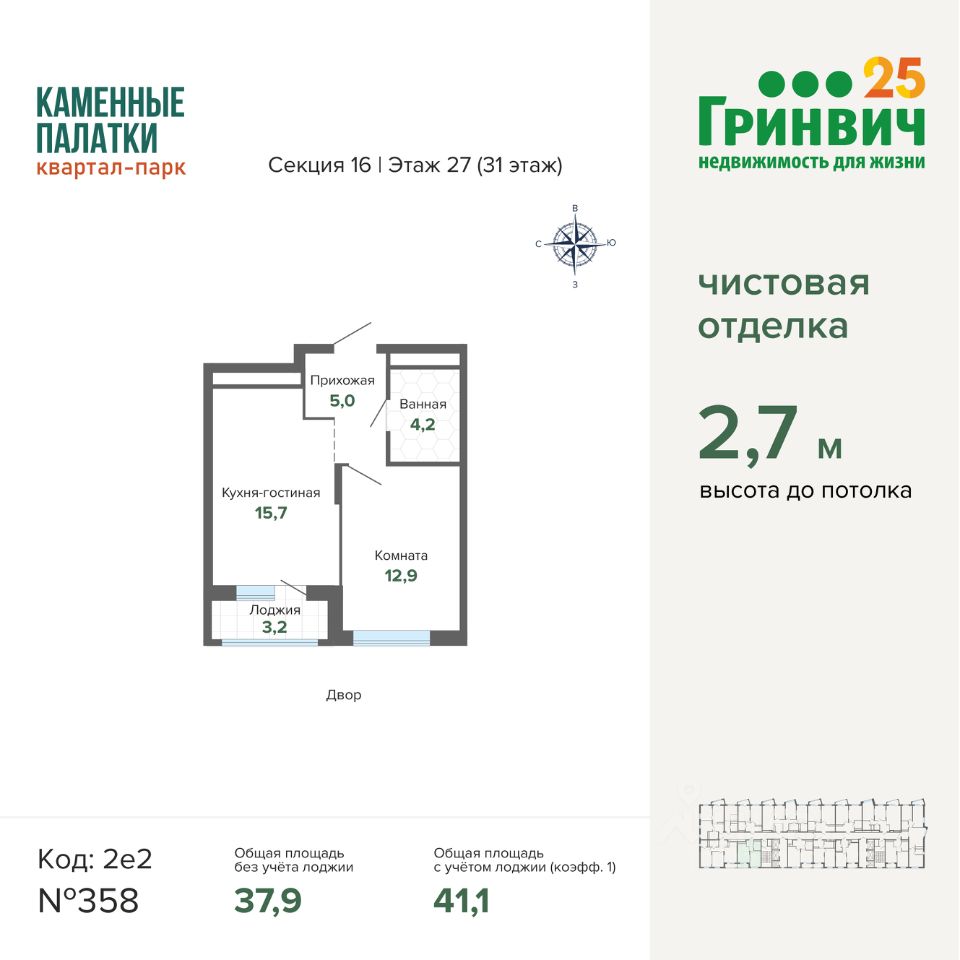 В продаже 4 очередь (секция 16). Срок сдачи 4 квартал 2025 года