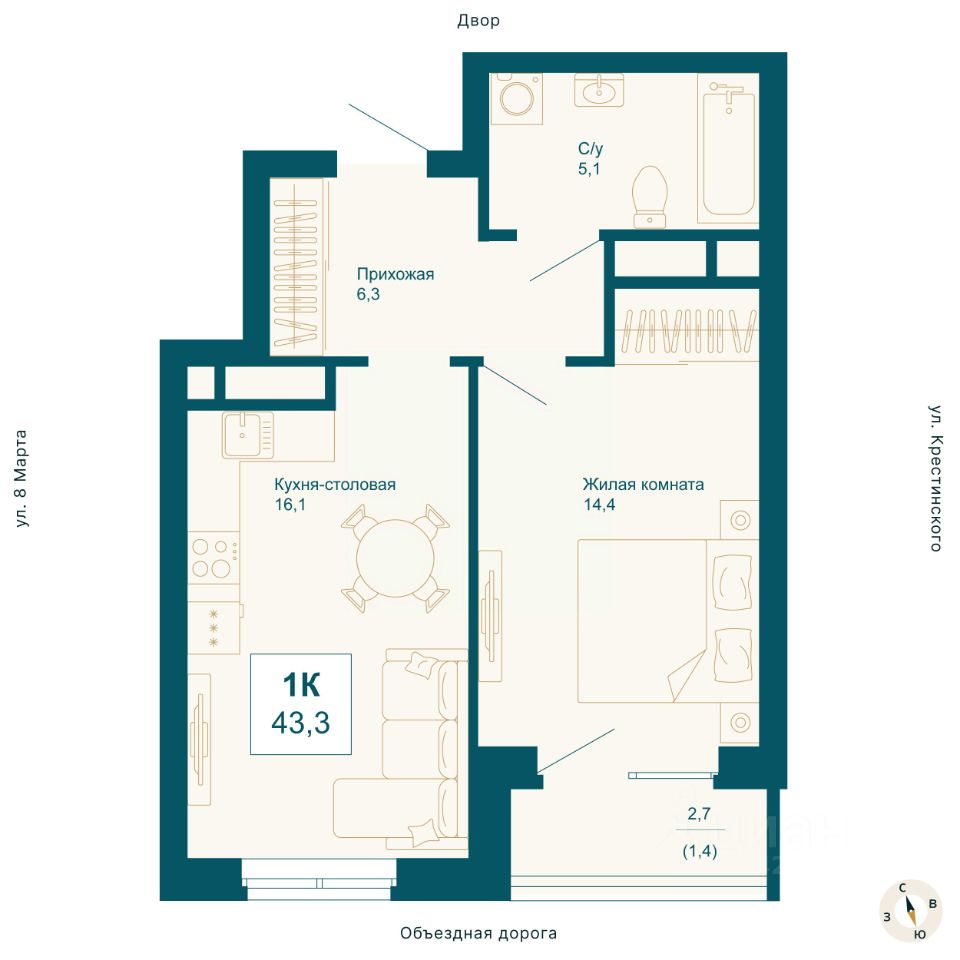продам 1-к, 8 Марта, 1978 356 900 ₽