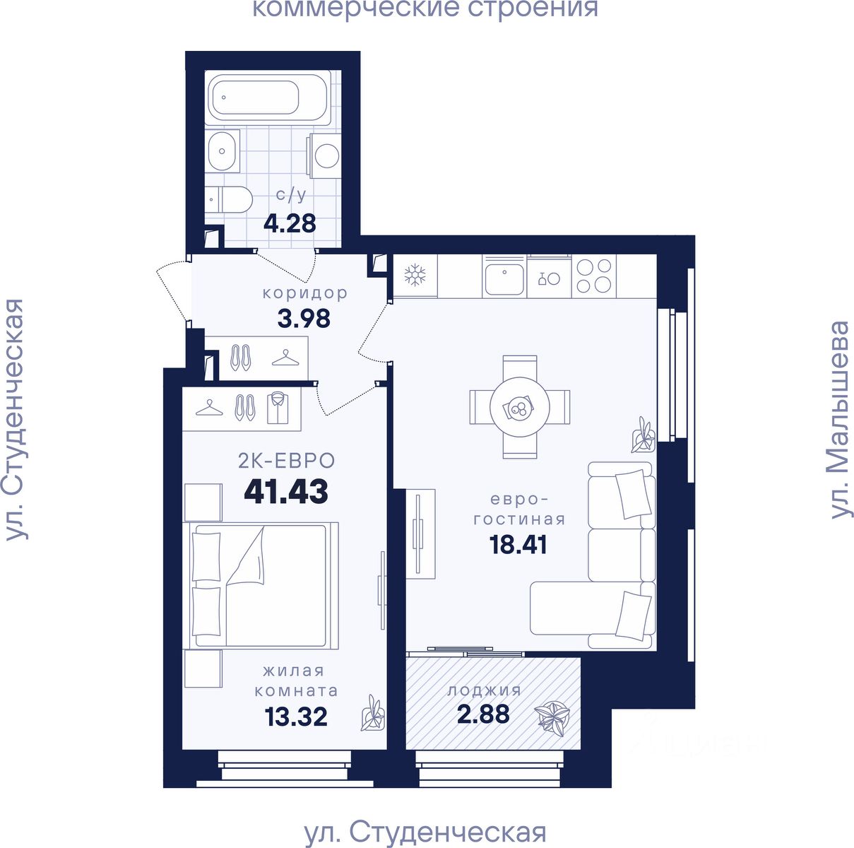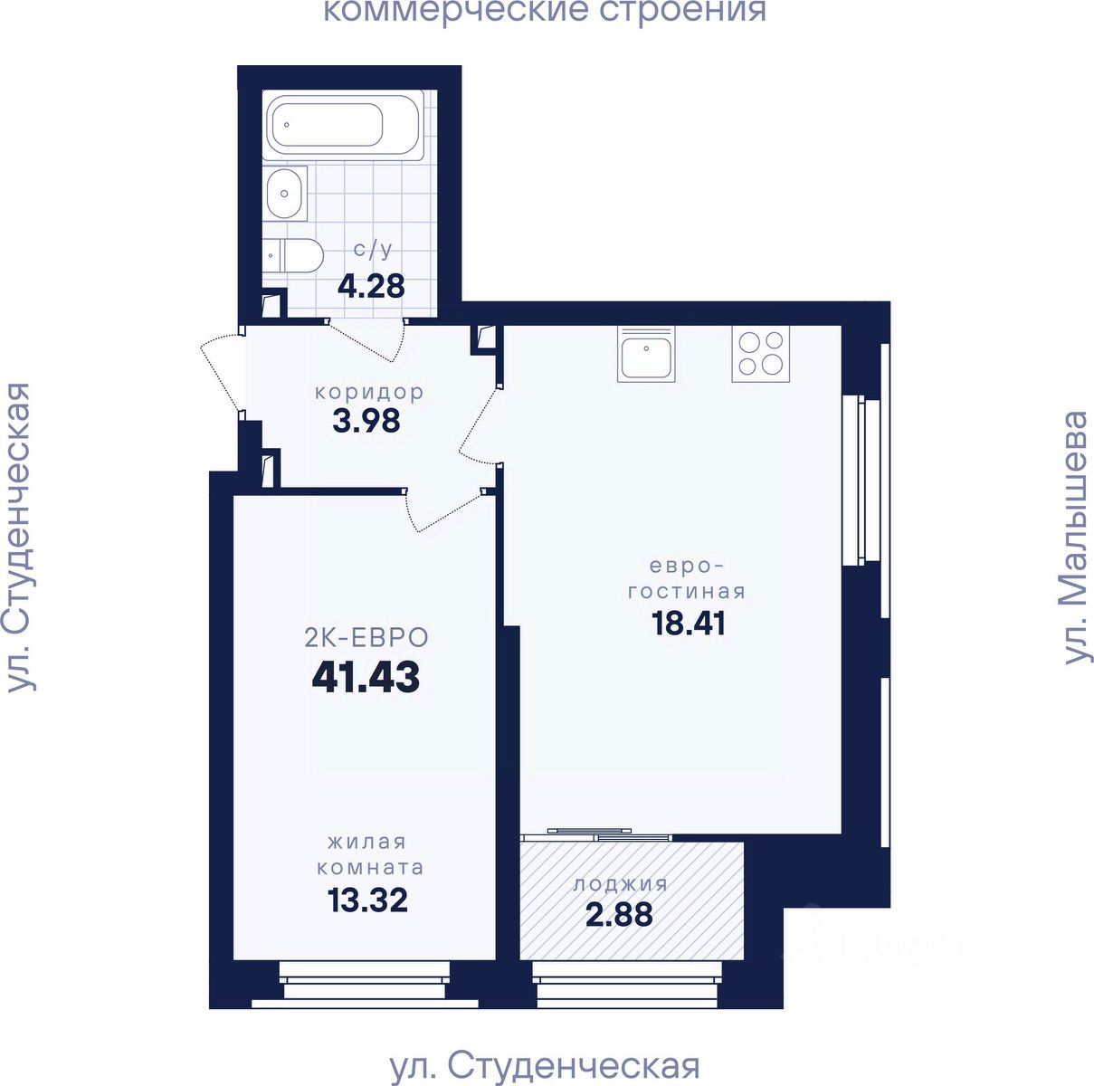 Общая площадь41,43 м2