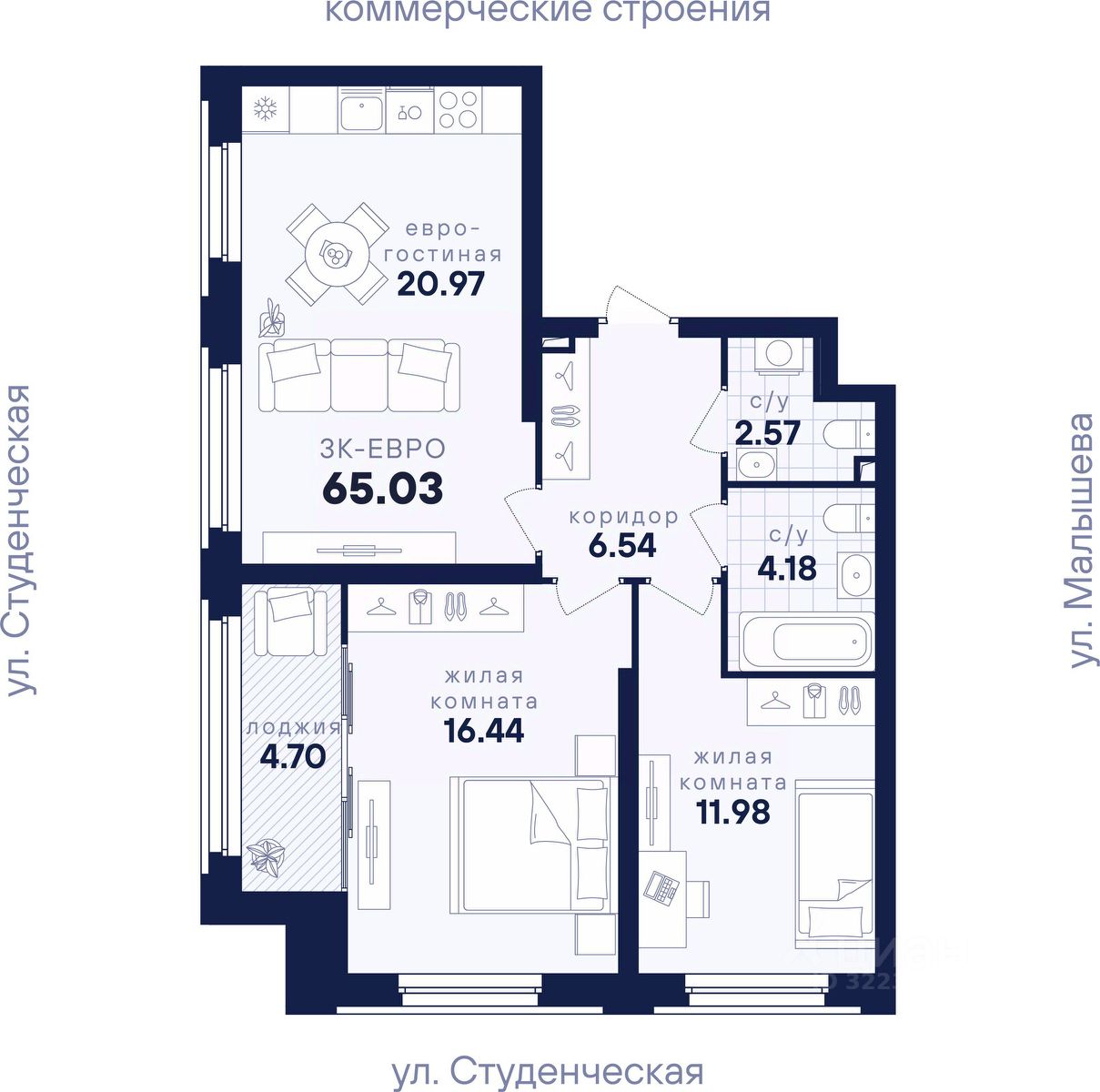 Общая площадь65,03 м2