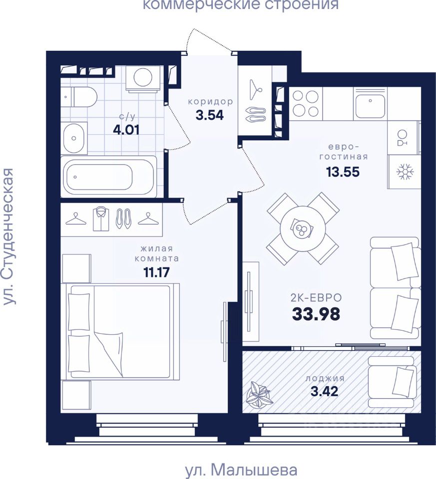 Общая площадь33,98 м2