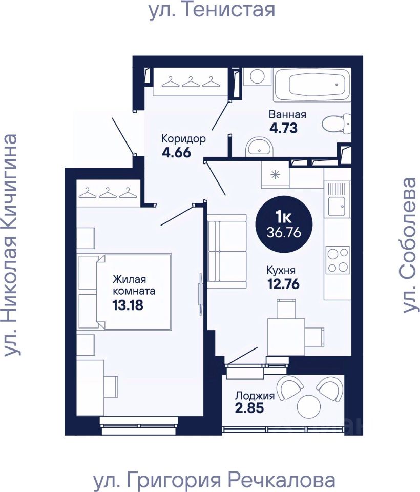Общая площадь36,76 м2