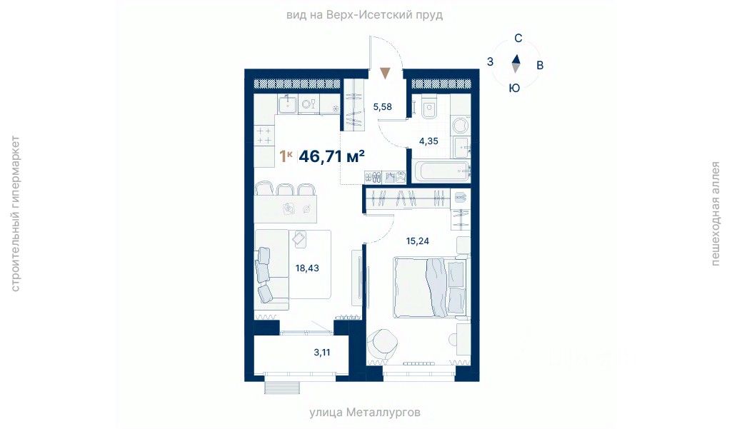 продам 1-к, Металлургов, 70 лит. д7 605 377 ₽
