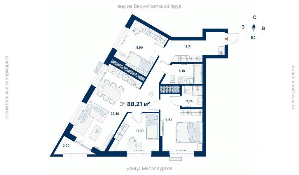 продам 3-к, Металлургов, 70 лит. д15 963 910 ₽