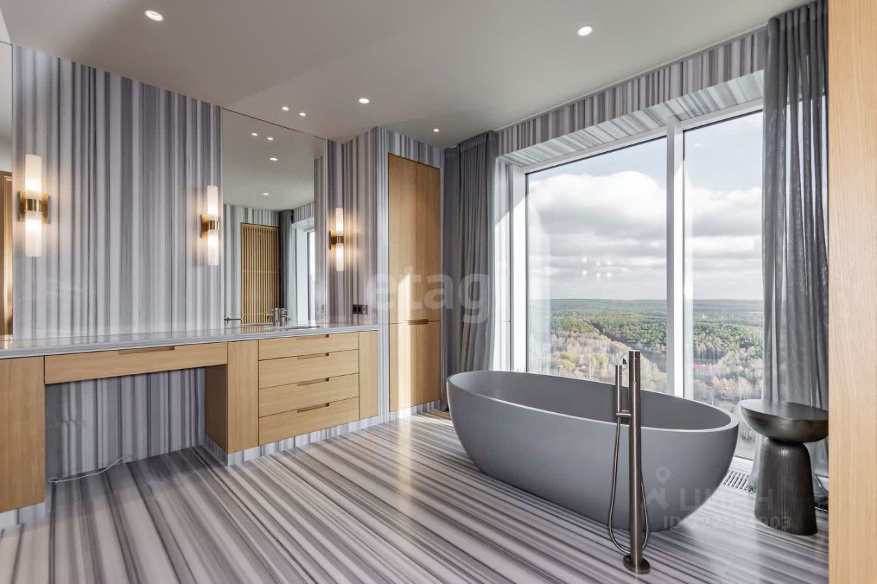 Квартира с панорамными окнами высотой 6 метров подарит вам захватывающие виды на город, которые оставят незабываемые впечатления и сделают ваш новый дом особенным.