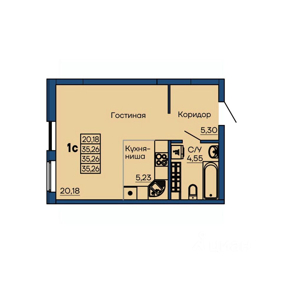 Большая квартира-студия на 7 этаже. Окна выходят на ул. Гагарина. Чистовая отделка под ключ. Дом в 15 минутах от центра города. Рядом остановки общественного транспорта, школы и детские сады.