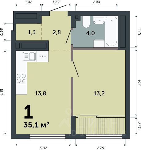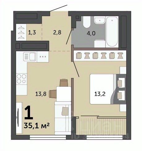 Общая площадь35,1 м2