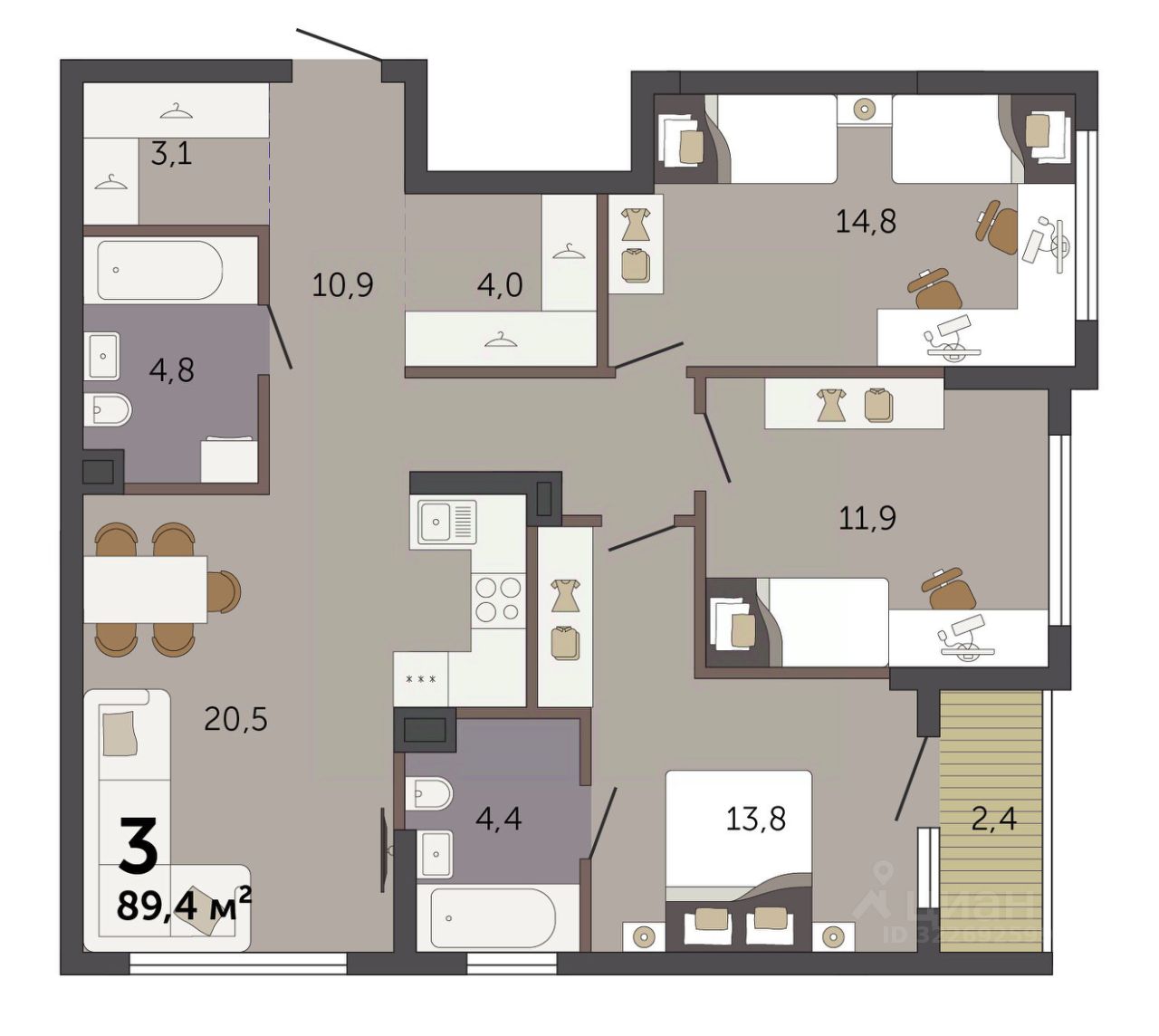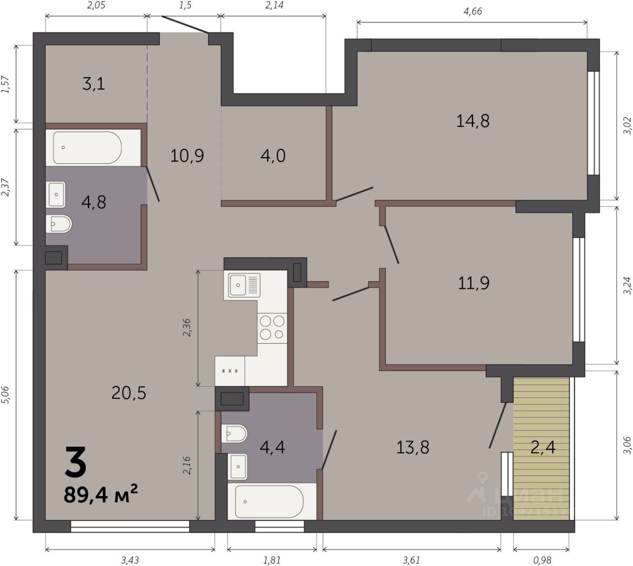 Продаётся 3-комнатная квартира в строящемся доме (Секция 1.1), срок сдачи: I-кв. 2028, общей площадью 89.4 кв.м., на 2 этаже. Новый жилой комплекс ''Парк Культуры'' от застройщика ''СЗ Новый Дом'' расположен по адресу: г. Екатеринбург, Базовый переулок.