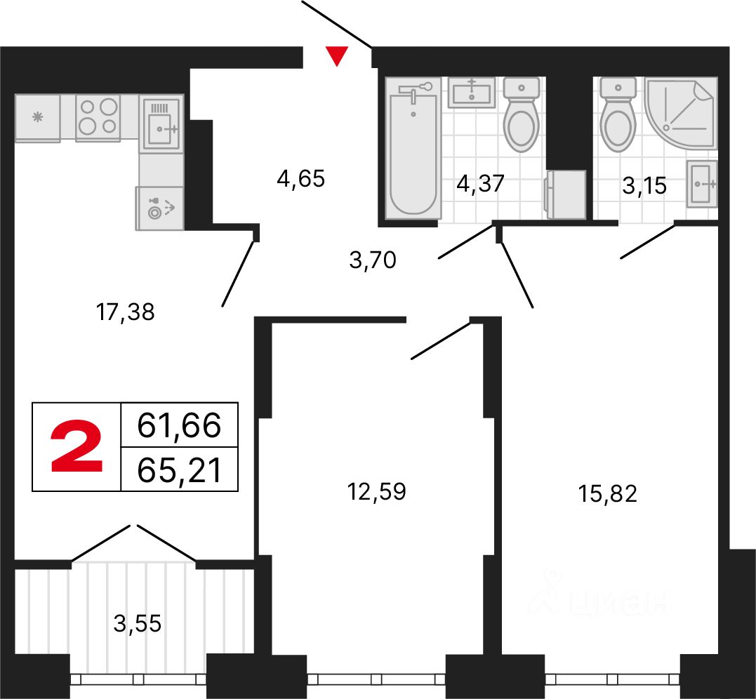 Общая площадь65,21 м2