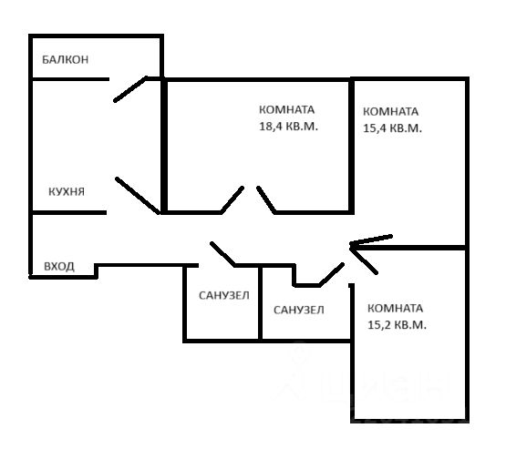 Два санузла: один функционирует как ванная, второй оборудован под кладовую (но есть все коммуникации для обустройства полноценной ванной комнаты - воплотите свои дизайнерские мечты!).