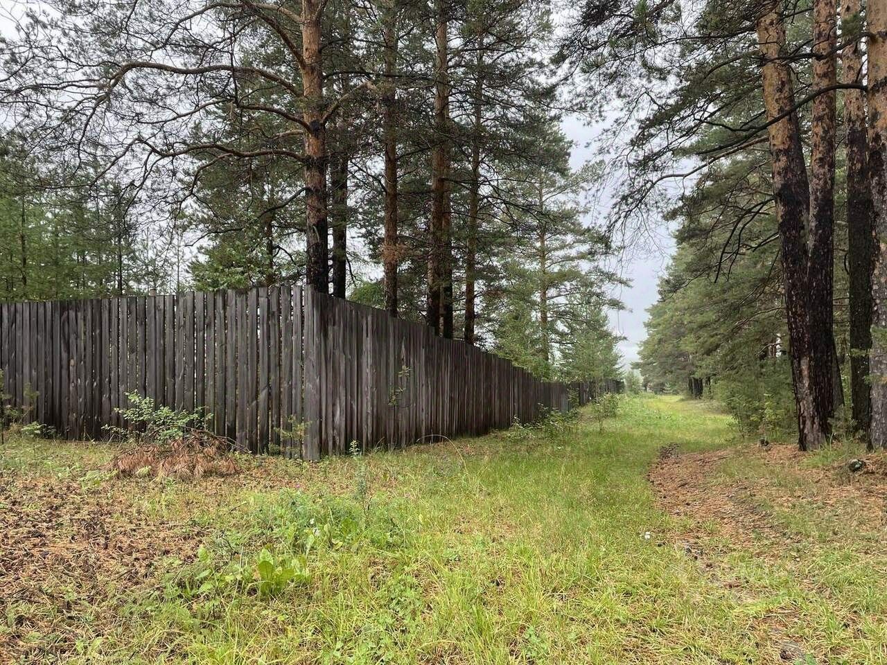 Участок огорожен забором по периметру.