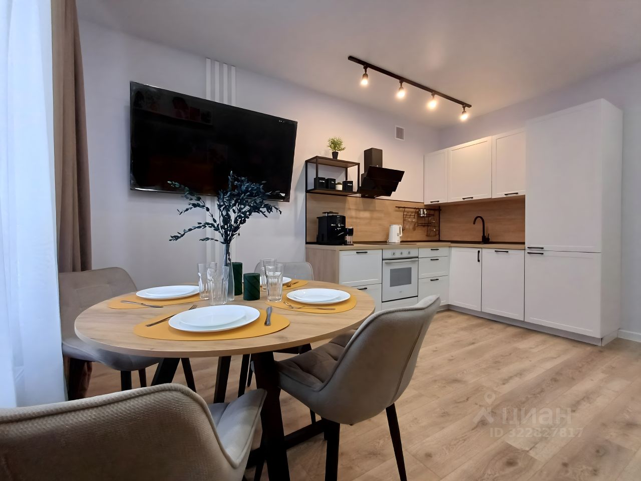 Кухня,встроенный холодильник, встроенная микроволновая печь, духовка, плита, кофемашина, посудомоечная машина, телевизоры,стиральная машина, новая посуда, диван, кровати,столы, шкафы! Все новое!