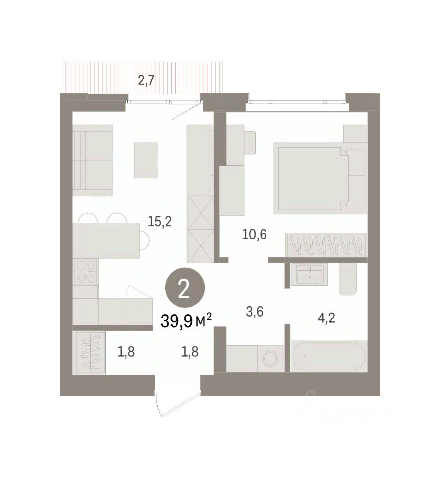 Общая площадь39,9 м2