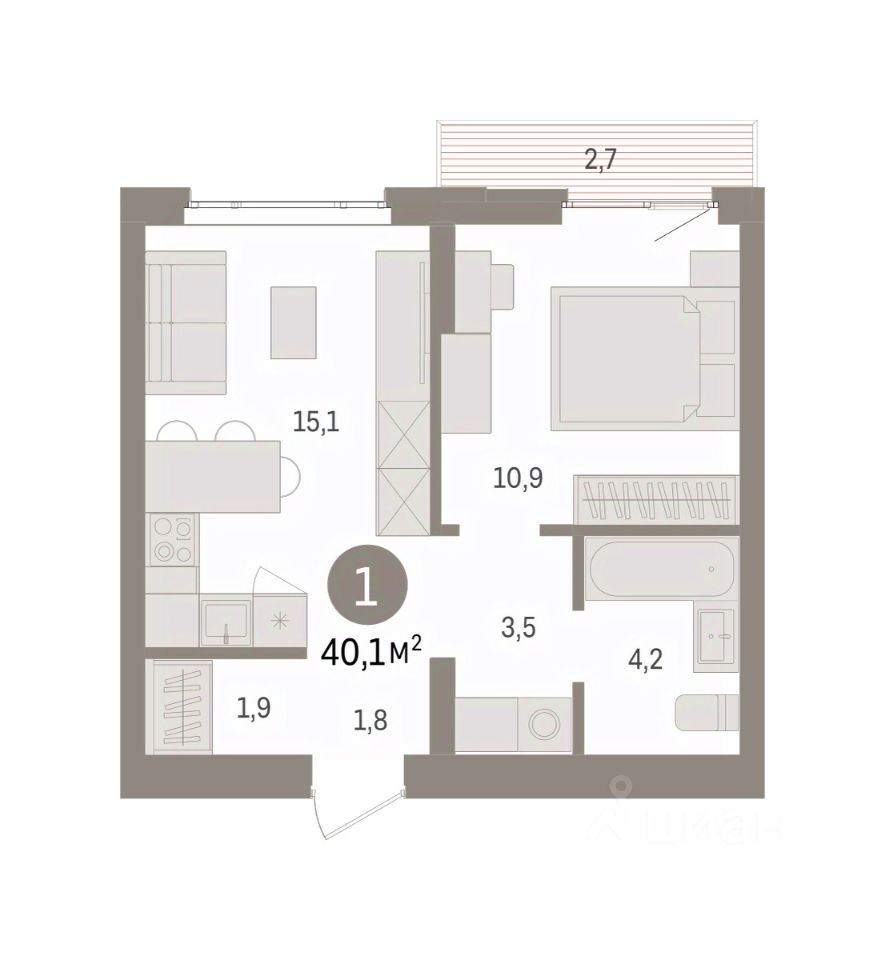 Общая площадь40,1 м2