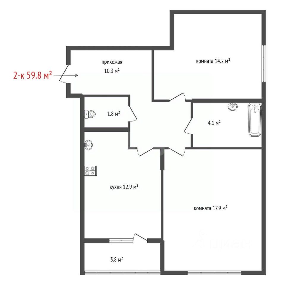 продам 2-к, Щербакова, 1507 590 000 ₽