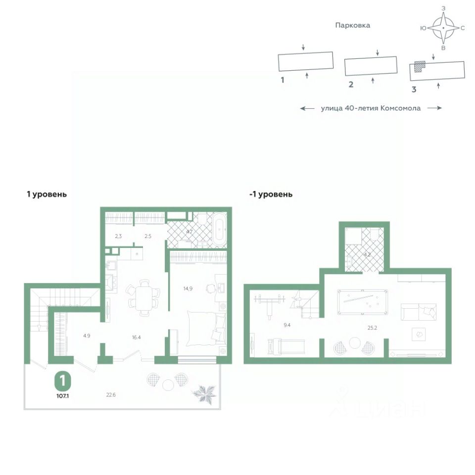 Квартира располагается в ЖК ''Комсомольский'' — жилом комплексе комфорт-класса. Здесь вы будете наслаждаться беззаботной жизнью, ведь ваш дом — воплощение практичности, безопасности и надежности. Для удобства предусмотрены колясочные на первых этажах домов, где можно оставить велосипеды и коляски в тепле. За безопасность отвечают система электронных ключей и видеонаблюдение. Еще здесь собственная котельная, поэтому в доме всегда будут горячая вода и оплата счетов только за фактически потребленное тепло.