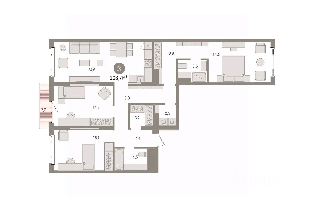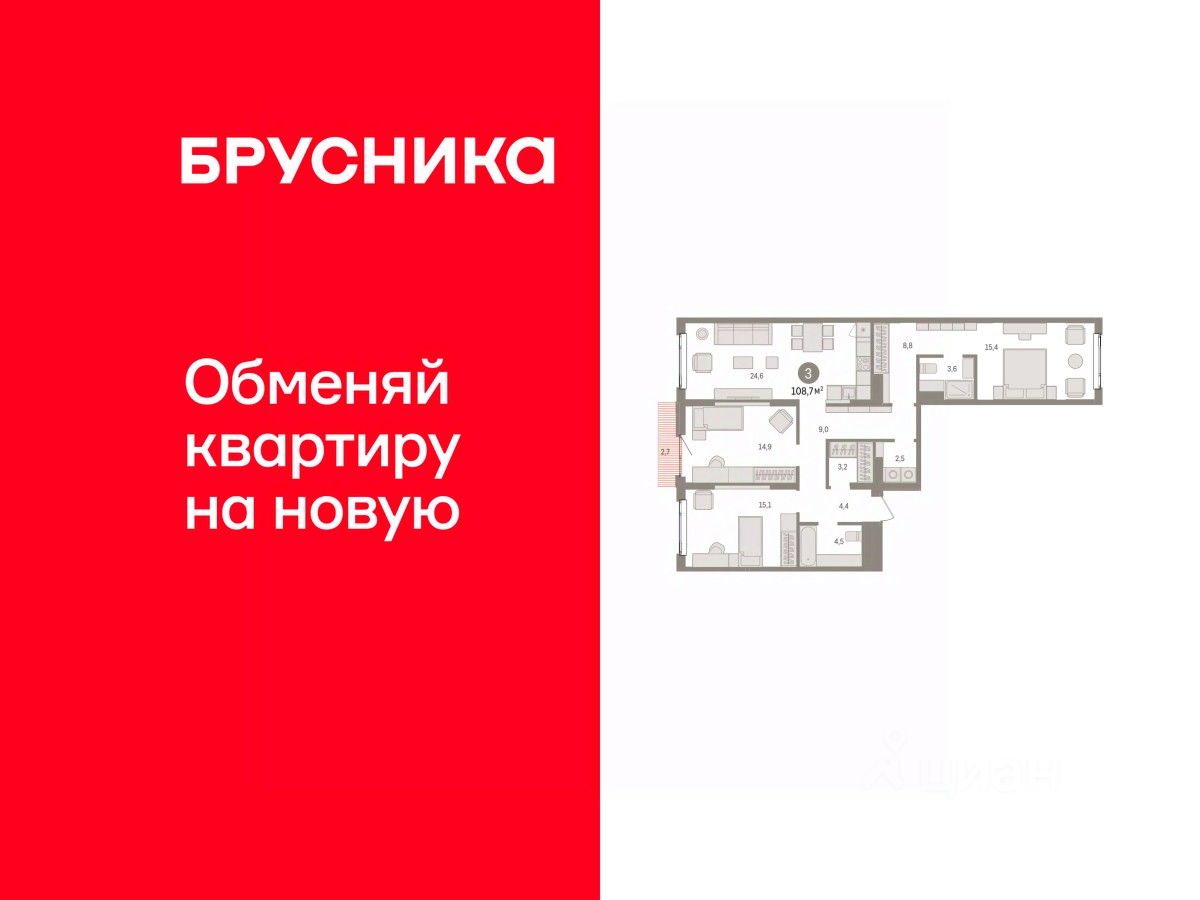 Общая площадь108,7 м2