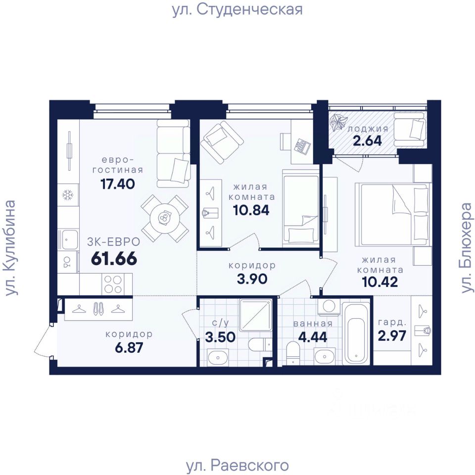 Общая площадь61,66 м2