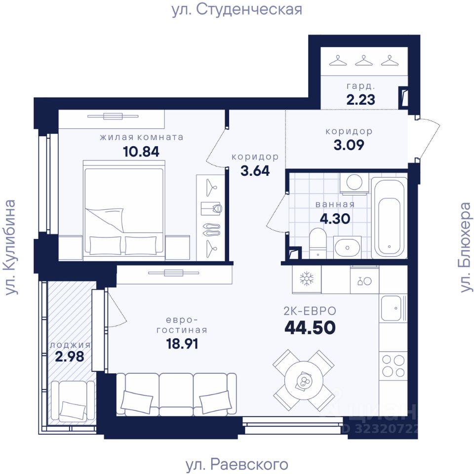 Общая площадь44,5 м2