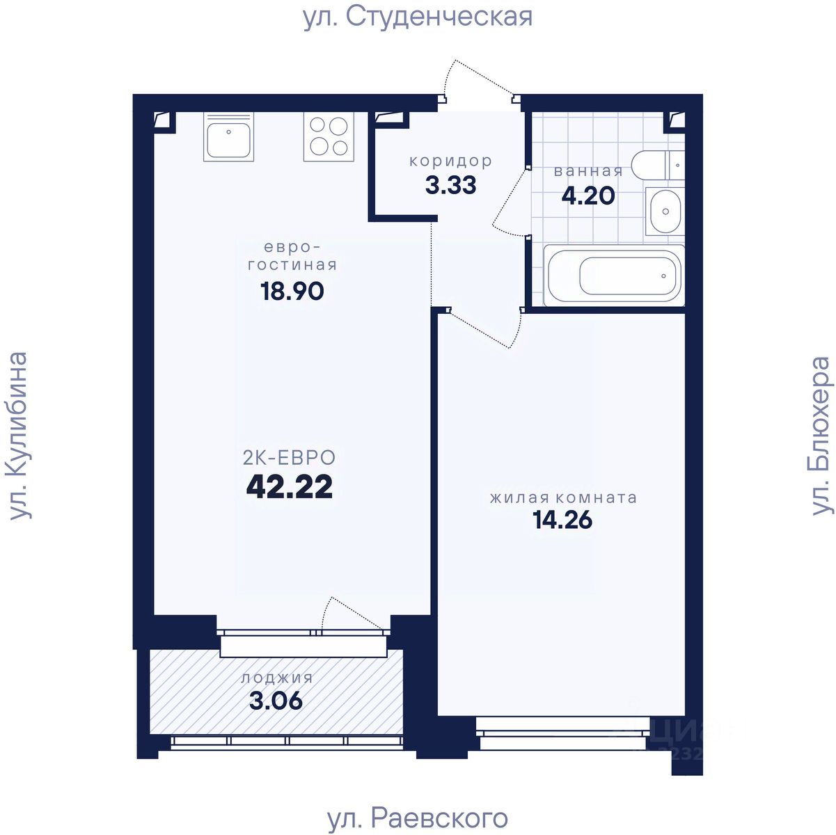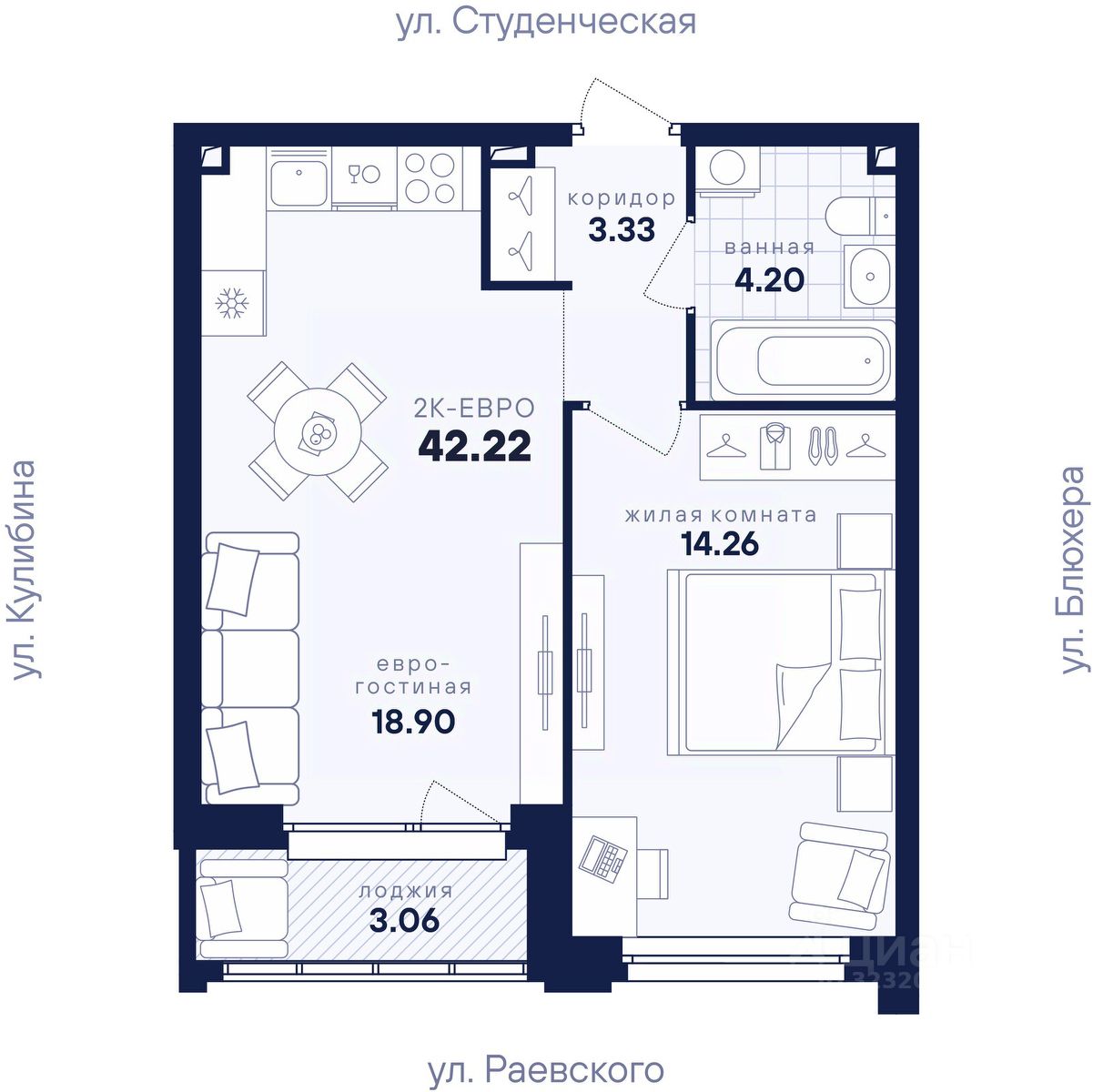 Общая площадь42,22 м2