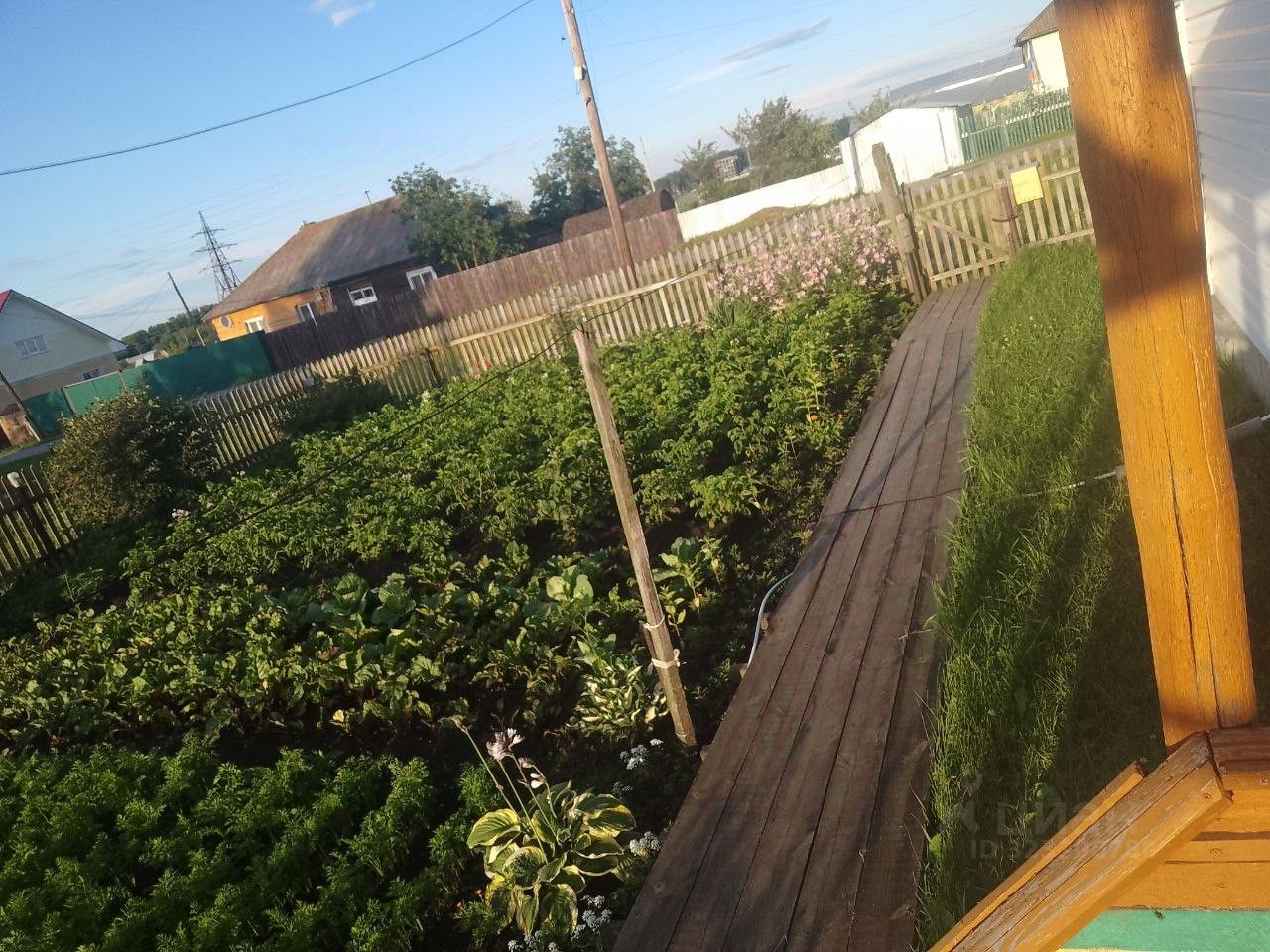 Земельный участок 30 соток представляет собой ухоженный огород при доме, а также участок за хоз. постройками (место для покоса/посадки картофеля). На территории имеются плодовые деревья и кустарники, чистый и возделанный огород. Несколько сараев (комплекс).