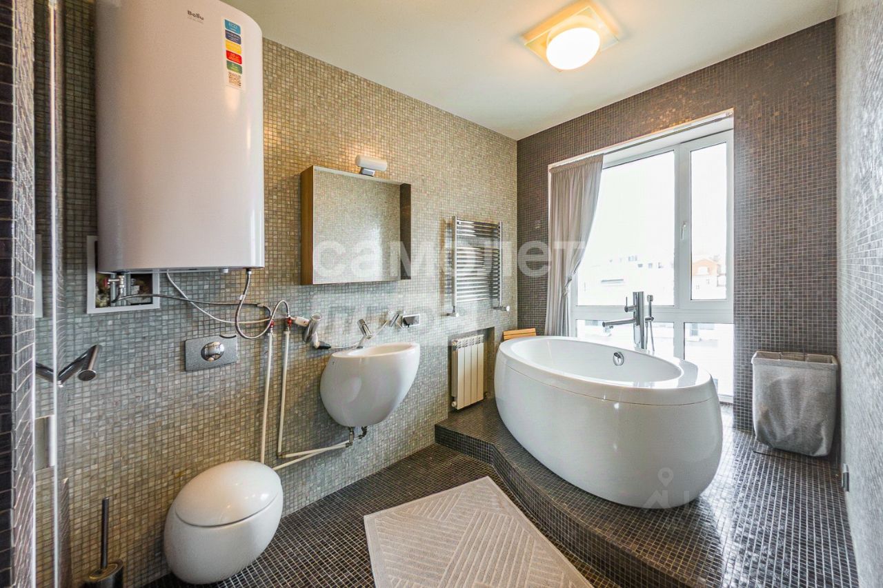 — Аквариум в кабинете на 1225 литров. — Полы - паркет и керамогранит известных зарубежных производителей. — Один сан.узел оснащен и ванной с гидромассажем, а второй дизайнерской ванной. — Техника Miele . — Кондиционеры panasonic.