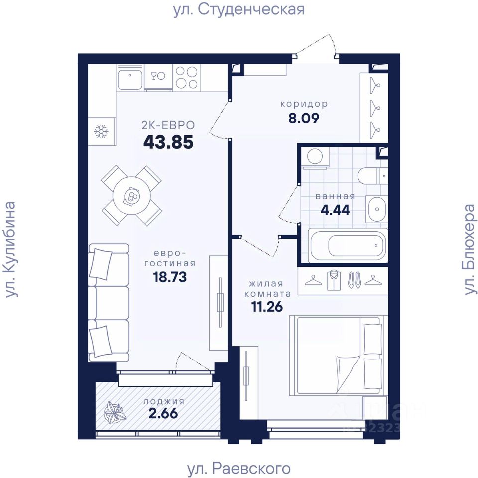 Общая площадь43,85 м2