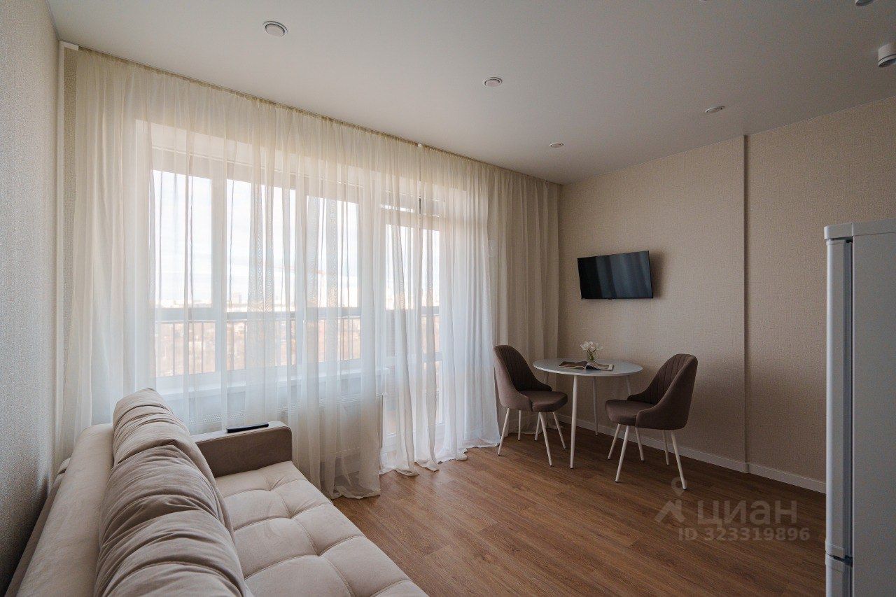 Сдается на ДЛИТЕЛЬНЫЙ СРОК в ЖК Московский квартал новая стильная светлая квартира-студия 25м2 в теплых тонах полностью меблирована и оборудована всей необходимой бытовой техникой. Окна квартиры выходят на внутренний проулок, где возможна парковка при наличии свободных мест. Внутренний просторный уютный двор с разнообразными детскими площадками, игровыми зонами, тренажерами. В доме охрана круглосуточно, работает консьерж. В округе богатый природный ландшафт: Ботанический Сад, Южный Парк, Парк им. Архипова, Парк Чкалова, Юго-Западный Лесопарк. Общественный транспорт в шаговой доступности: троллейбусы, автобусы. По наполнению в квартире есть холодильник, микроволновая печь, телевизор (Wi-Fi есть), варочная индукционная панель, стиральная машина. Лоджия с прекрасным видом на город (этаж 11) особенно атмосферно в вечернее время. Диван двухспальный раскладной. Домофон. Пожелания к будущим жильцам: , студенты, семейная пара, без домашних животных. Вы будете первыми проживающими, квартира ранее не сдавалась. Аренда 36500, комиссия 35% от аренды, залог 30 0000 (можно разбить на 2 части, яляется возвратным). Коммунальные услуги оплачиваются отдельно лето около 2500, зима около 3500. ----- Примечание: у собственника могут быть дополнительные пожелания к жильцам - обсудите их в чате или по телефону