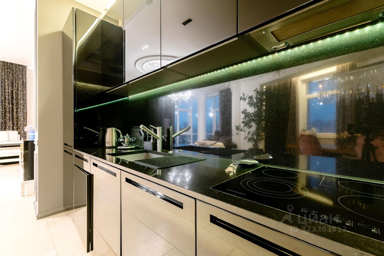 В продаже просторная квартира с дизайнерским ремонтом, обставлена дорогой мебелью, декором и предметами искусства.