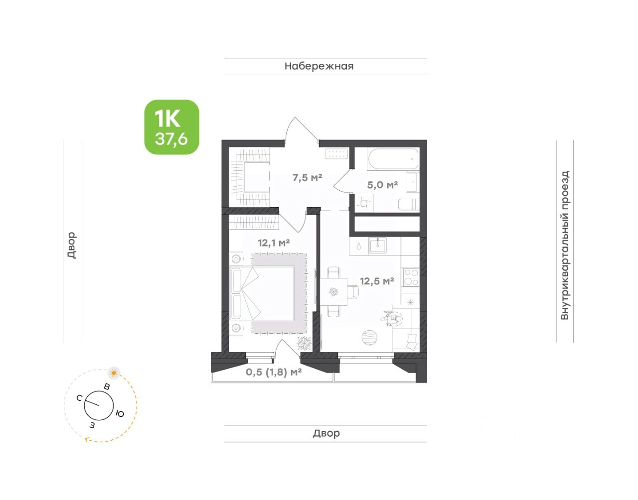 Изолированная комната обеспечивает личное пространство для отдыха и восстановления. Здесь достаточно места для большой кровати и системы хранения