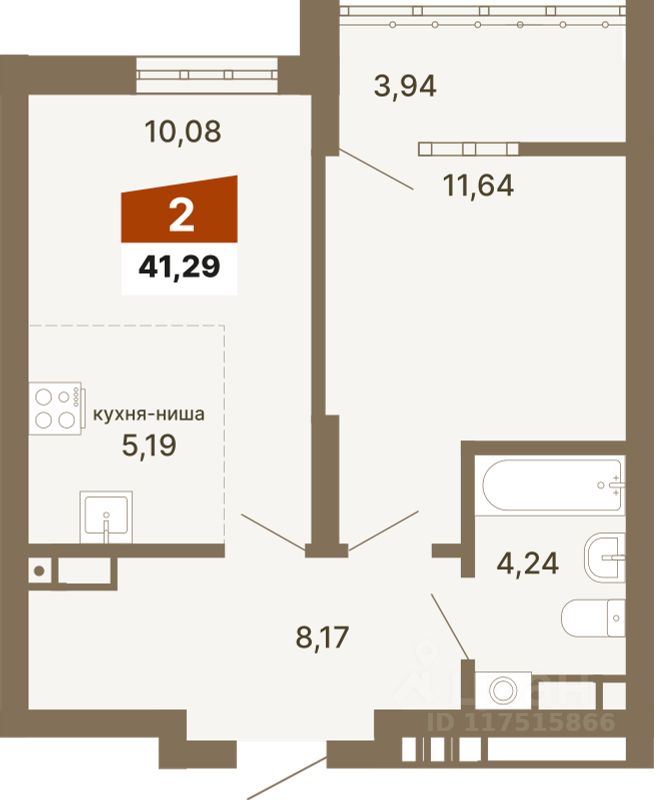 Общая площадь41,29 м2
