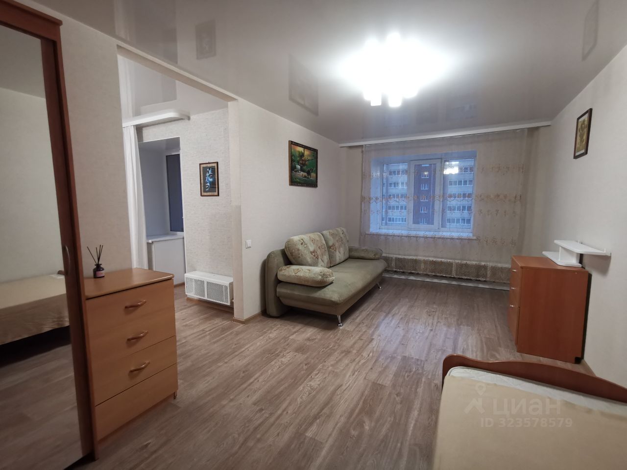 Квартира чистая, ухоженная, с ремонтом и мебелью: кухонный гарнитур, варочная поверхность и духовой шкаф, холодильник, стиральная машина, стол со стульями, кровать с матрасом, диван, два шкафа-купе (в коридоре и комнате), два комода. Ванна полностью в кафеле, везде натяжные потолки, на полу ламинат, пластиковые окна, теплая лождия, широкие подоконники.