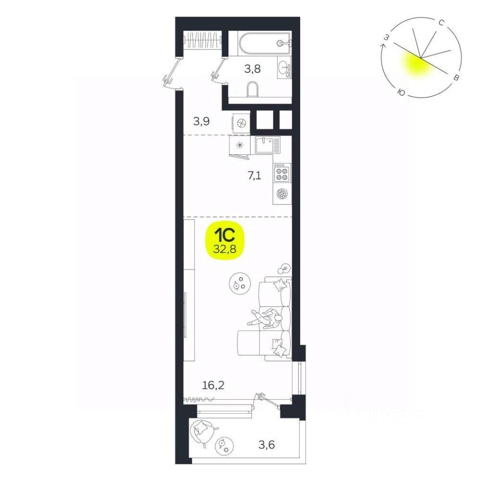 Общая площадь32,8 м2