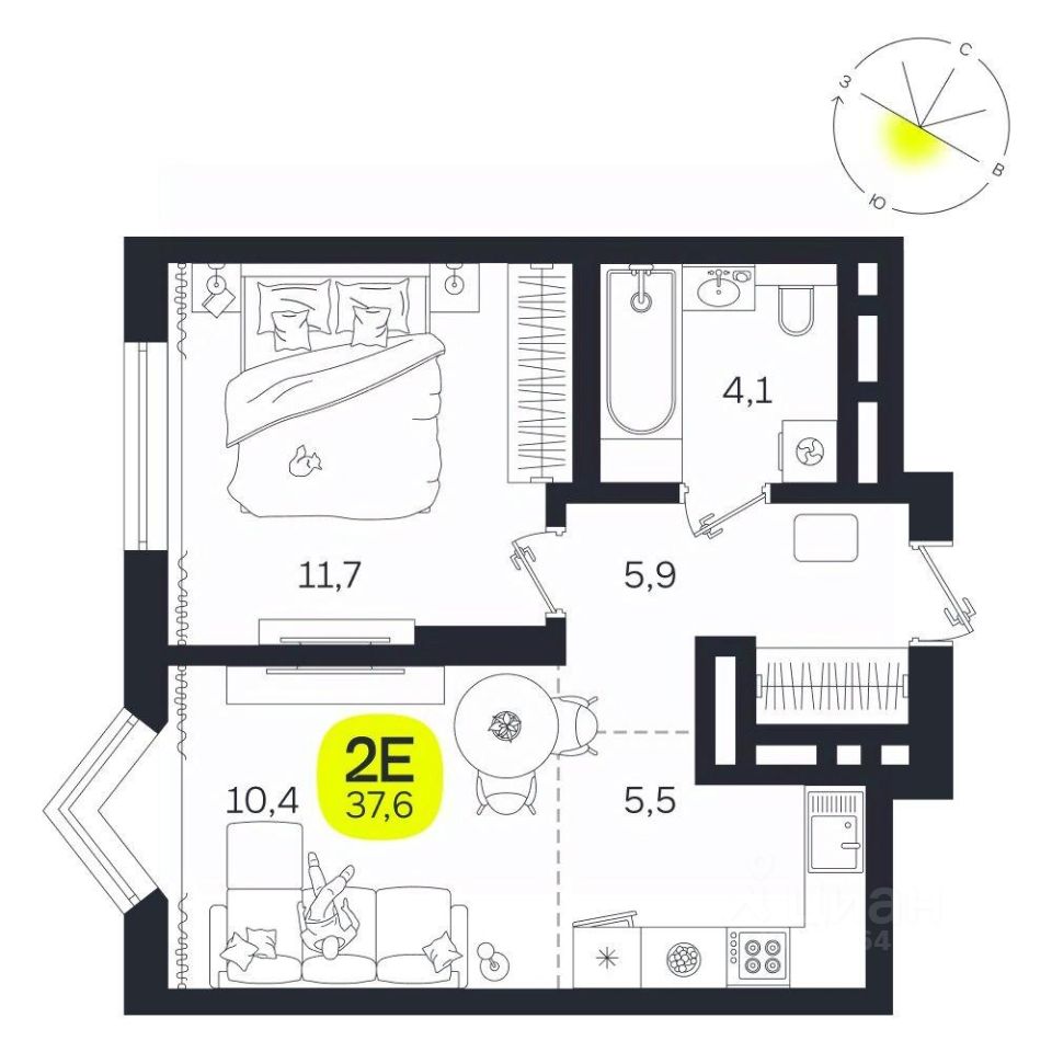 Общая площадь37,6 м2