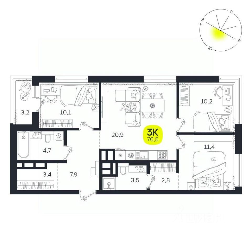Общая площадь76,5 м2