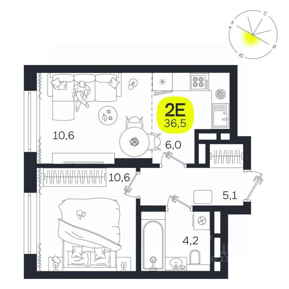 Общая площадь36,5 м2