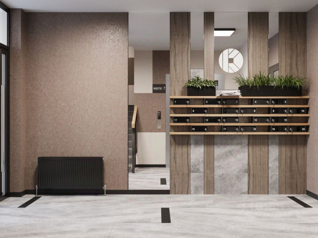 Места общего пользования Отделка холлов в ЭКО-стиле, выполненная в природных цветах по уникальному дизайн-проекту, специально разработанному для ЖК ''Культура''.