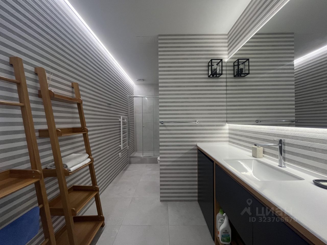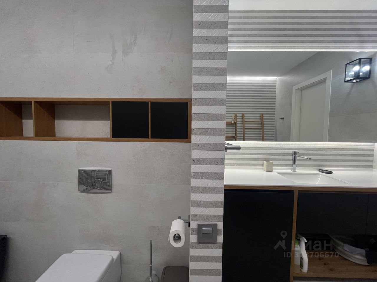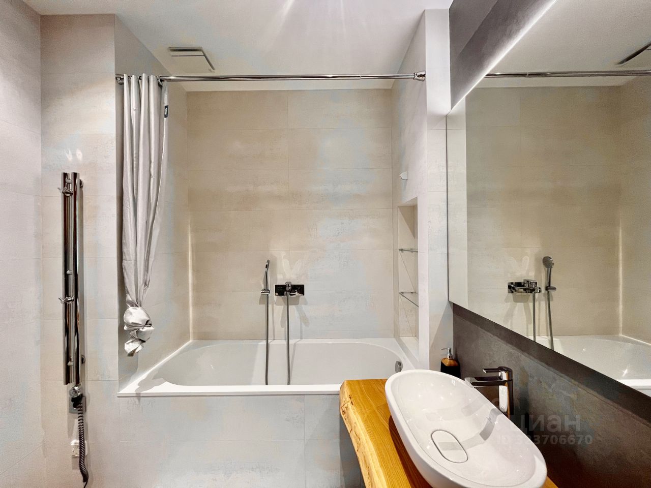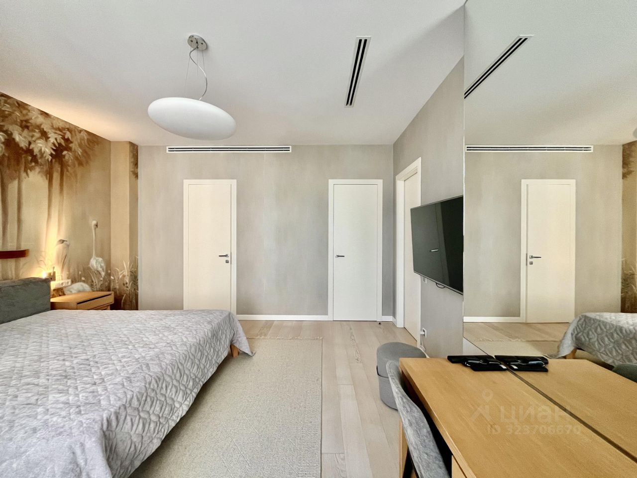 В квартире выполнен дизайнерский ремонт, что придаёт ей современный и стильный вид. Просторная кухня площадью 18 кв. м оборудована всей необходимой техникой: кондиционер, холодильник, посудомоечная и стиральная машины, телевизор. В комнатах и на кухне есть мебель, поэтому переезд будет комфортным и быстрым. Два совмещённых санузла предлагают выбор между ванной и душевой кабиной.
