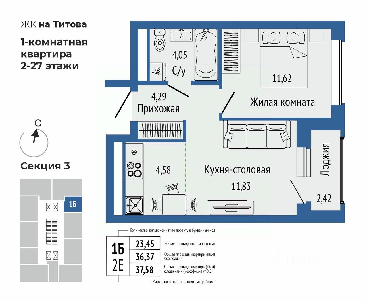 продам 2-к, Титова, 19.1 стр.7 956 010 ₽