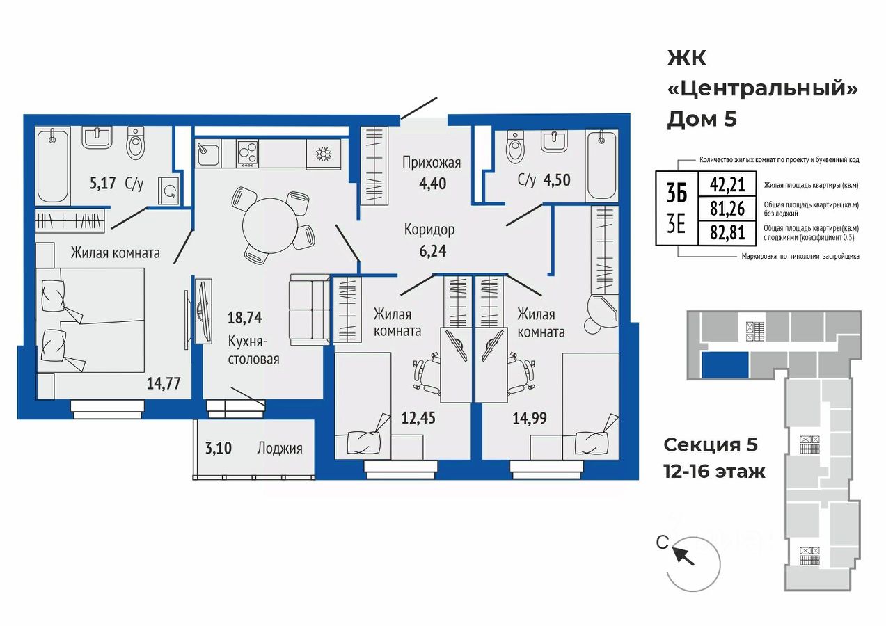 продам 3-к, Калинина, 33/5 стр.10 102 820 ₽