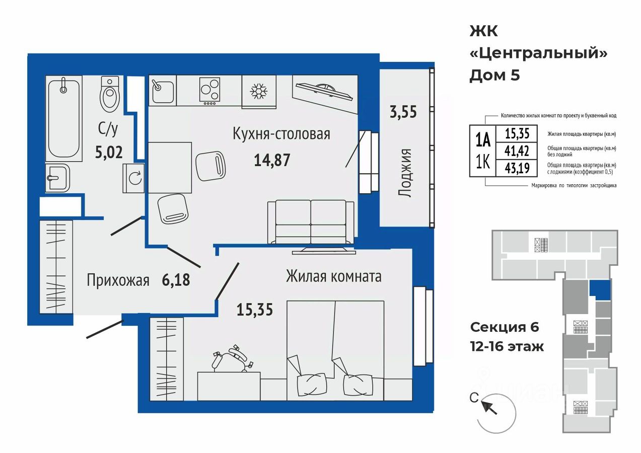 продам 1-к, Калинина, 33/5 стр.6 094 540 ₽