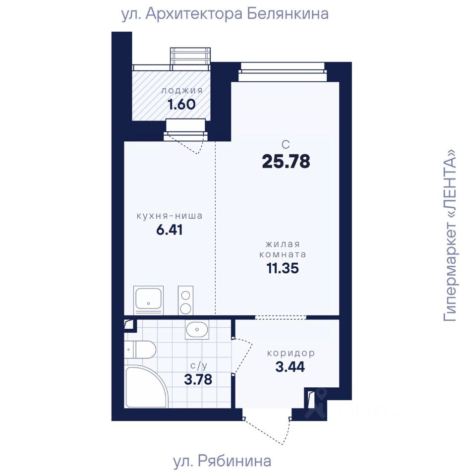 Общая площадь25,78 м2