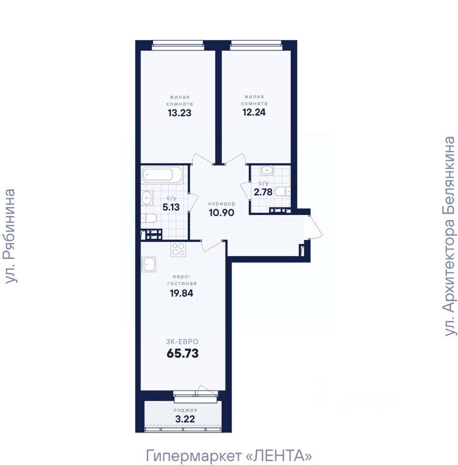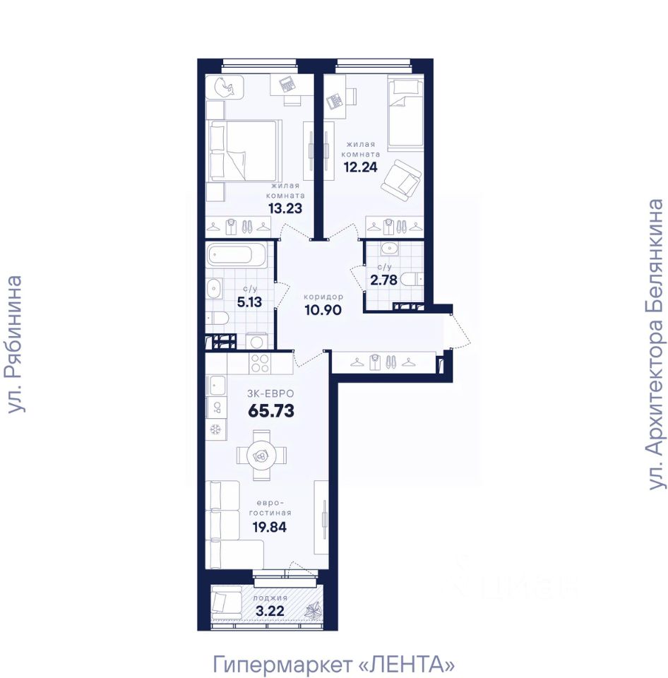 Общая площадь65,73 м2