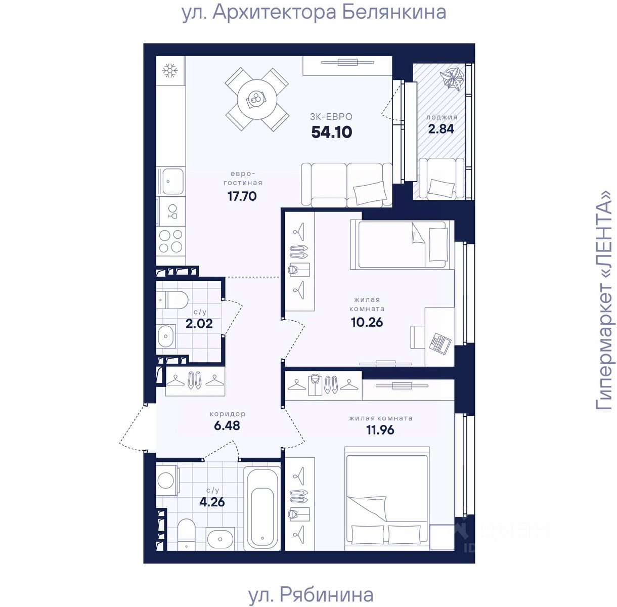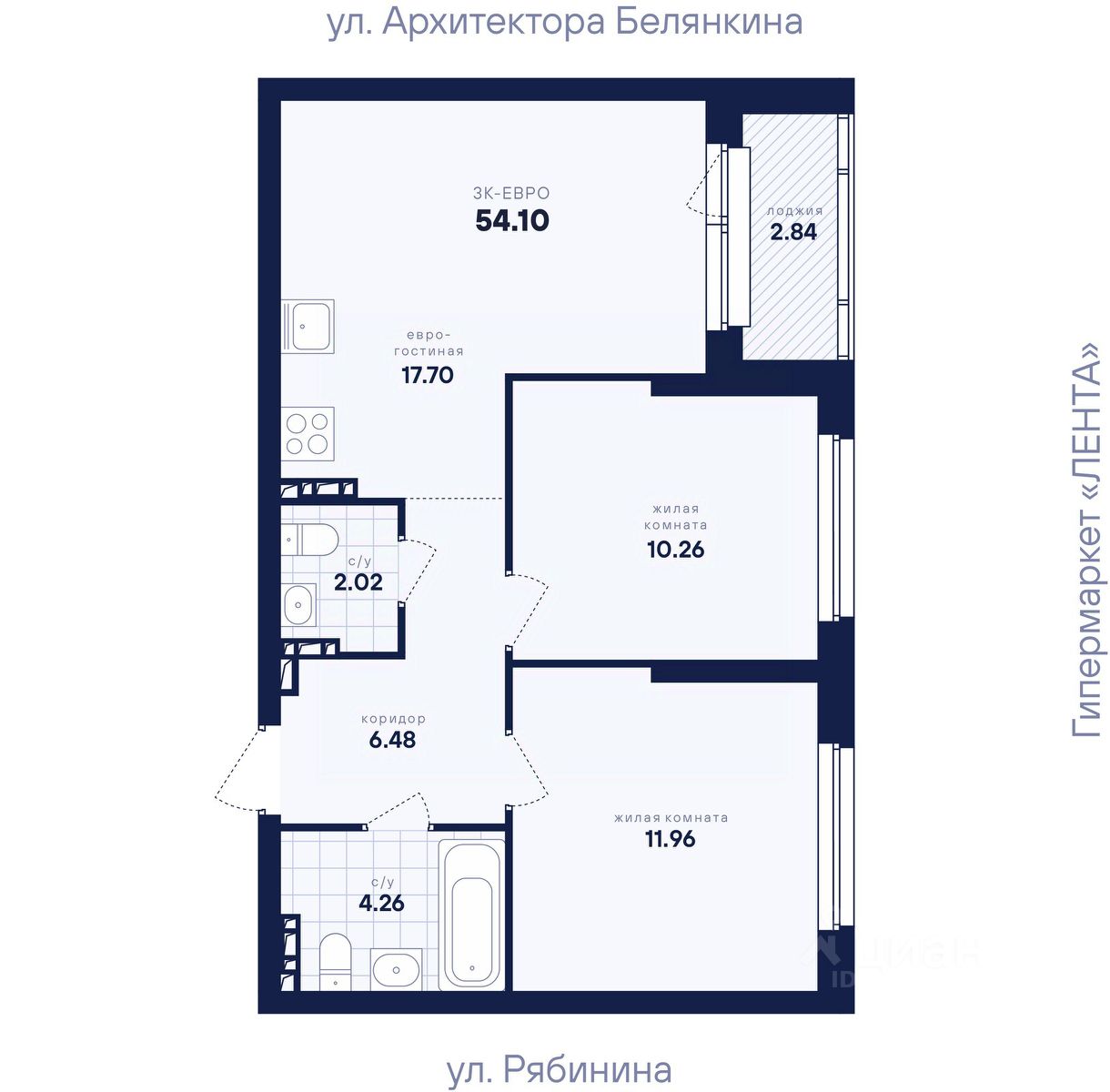 Общая площадь54,1 м2